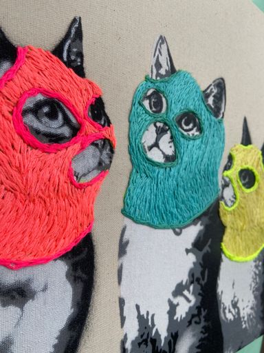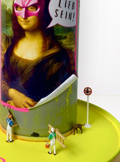 Während Claudias Stickbilder die Langsamkeit zelebrieren, möchte sie mir ihren Graffiti-Stenciln dem Betrachter ein großes Lächeln ins Gesicht zaubern. Denn auch für Claudia gibt es nichts Schöneres als Lachen.