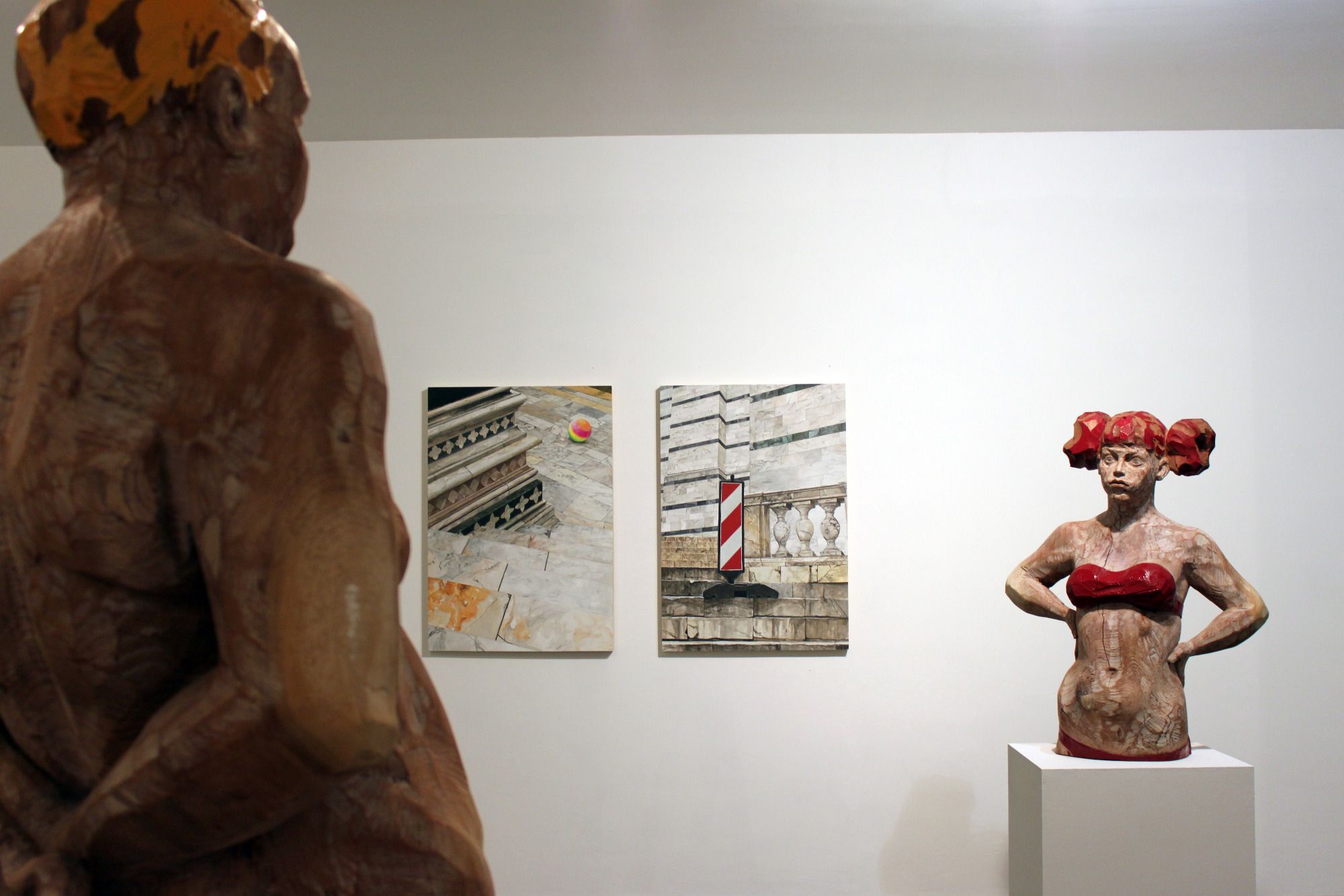 In seiner skulpturalen Formgebung erzeugt Hannes Mussner meist Menschenbilder, die mit einem selbstbezogenen Blick dem Betrachter gegenüberstehen.